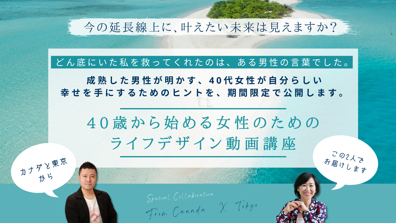 誰かが決めた土俵で生きても決して満足できないものですよね。あなたの生き方はあなたにしか作れない。 そして未来はデザインできるんです。そのコツを知ると、自分の未来はまだまだ可能性に満ちているんだな!と視界が広がります。